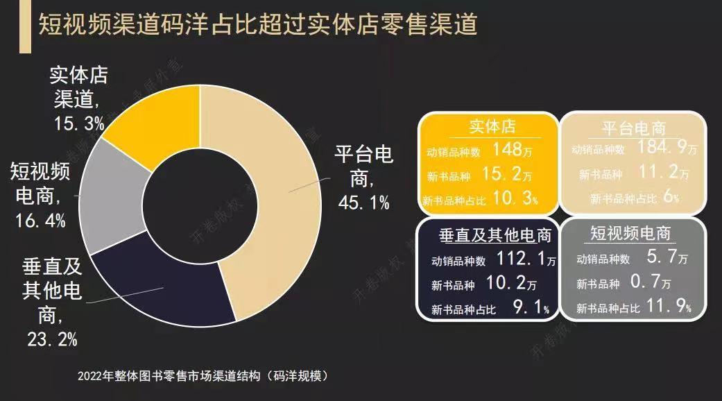 北京开卷发布的《2022年图书零售市场年度报告》显示,2022年实体店渠道零售图书市场同比下降37.22%,降幅超过2020年;平台电商同比下降16.06%,短视频电商同比上升42.86%。