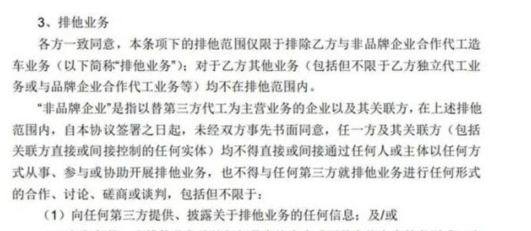 值得一提的是,在双方签署的这份协议中,还包括一项排他业务,即奇瑞方面不能再与其他汽车代工企业合作代工造车业务,但奇瑞可独立代工业务或与汽车品牌企业合作代工业务。