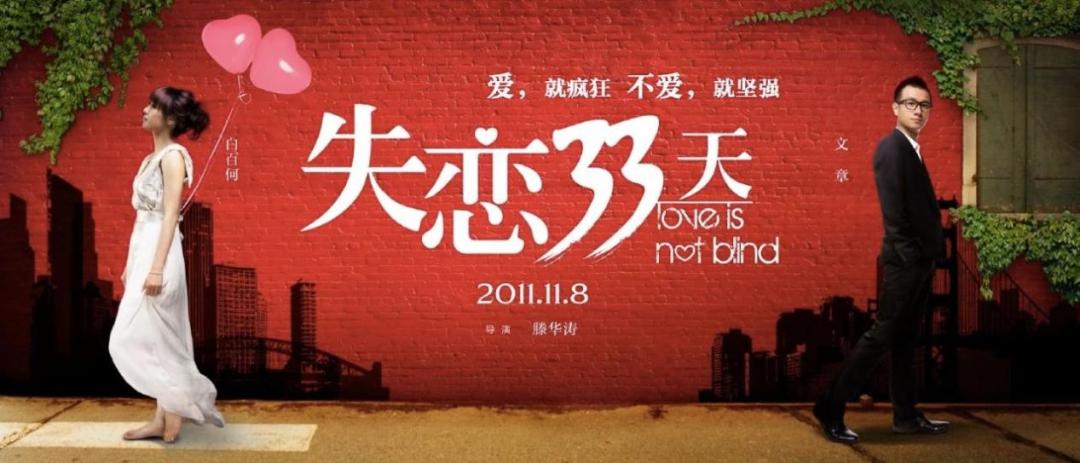 2011年11月11日,大盘票房7131万,主打治愈失恋的爱情片《失恋33天》则有4763万。该片以43.7%的排片获得了66.7%的票房份额,力压一众进口片,包括上映首日的动作片《惊天战神》,另外两部上映不足一周的好莱坞大片《铁甲钢拳》和《猩球崛起》,以及日本知名动画IP《名侦探柯南:沉默的15分钟》。最终票房3.02亿并进入了当年票房前十名,《失恋33天》以小博大的成绩让光棍节这一人造节日成为了热词,通过看电影庆祝光棍节至此开始。其实当天还有另外一部爱情片《光棍终结者》上映,不过票房只有72万。