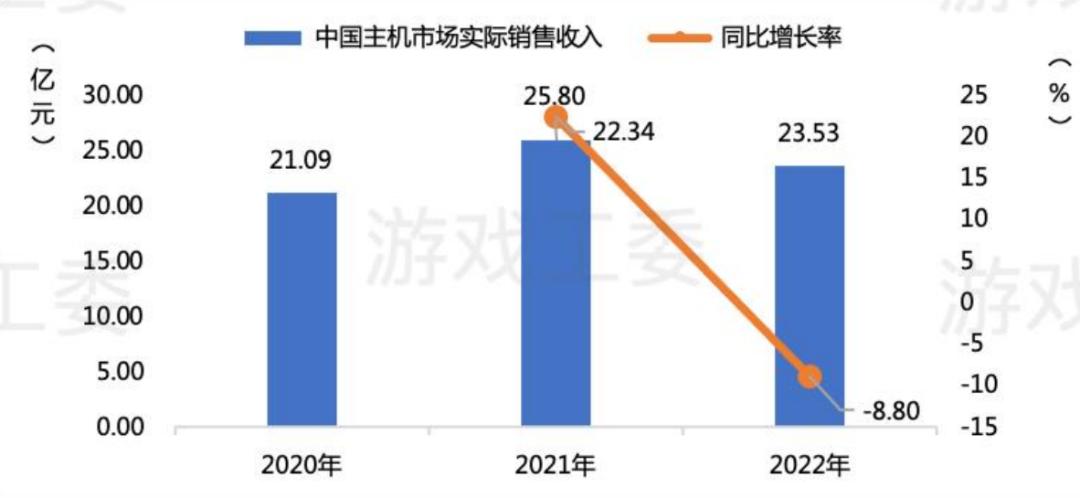中国主机游戏市场实际销售收入为23.53亿元,同比下降8.8%;