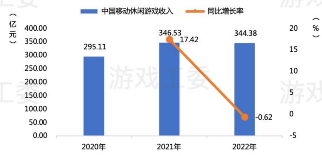 其中休闲游戏则因广告收入和内购收入混合变现模式,受行业环境影响较小,今年收入规模仅同比下降约0.62%,其中广告变现收入为248.61亿元,约占休闲游戏总收入的72%。