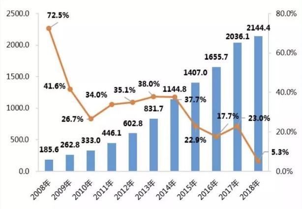 2008-2018国内游戏市场收入逐步增长,后续情况见下图