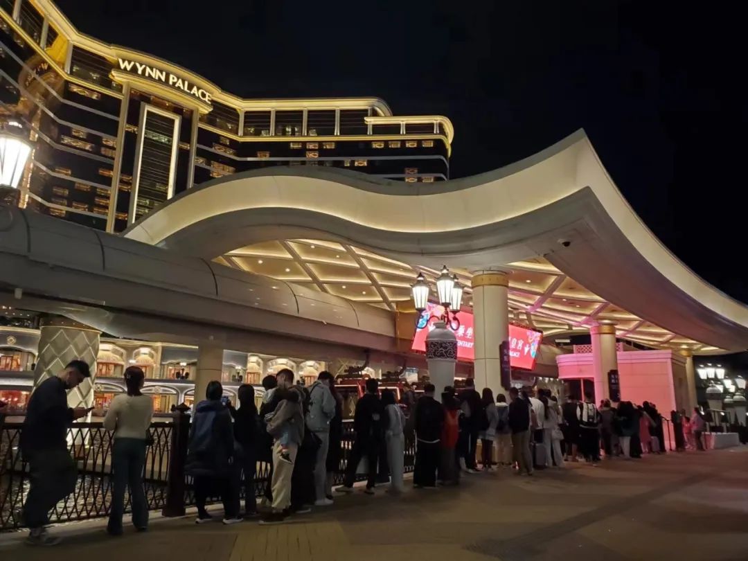 晚上七点半赶到永利皇宫缆车下,前面还有三百人在排队。