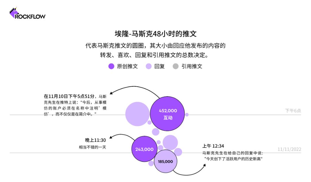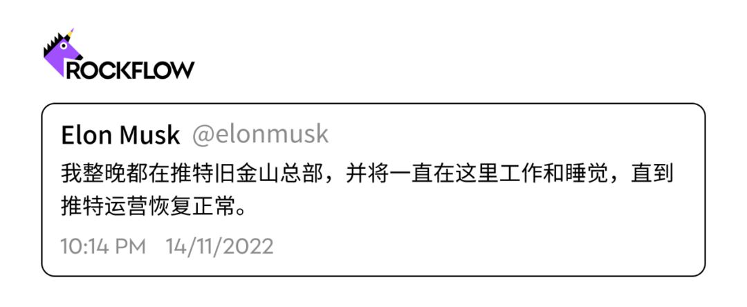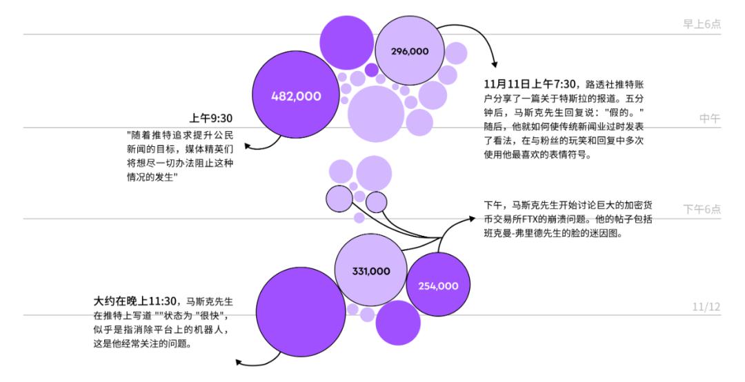 在11月的某个48小时内,马斯克在他自己的领导下,在社交网络上吹捧创纪录的活动时,共发布了60次帖子,包括对加密货币崩溃的评论和对批评他的工作场所政策的激烈回应。当有用户更改个人资料名称模仿他时,他发布了一项关于模仿账户的政策,并且他发布的许多推文很快在他的追随者中流行起来。