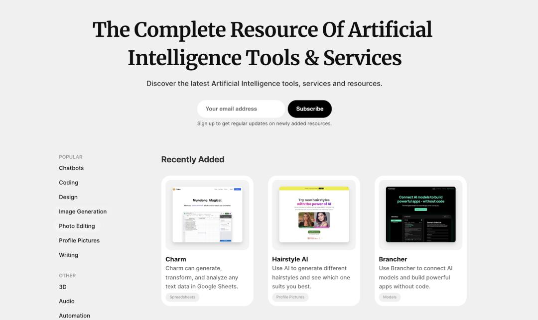 赶不上趟的我,积极寻找“平替”,最后找到了一个叫“All Things AI”的网站,里面汇集了上百个工具,不仅有智能编程、照片处理、游戏开发等专业应用,还有不少“小而美”插件:管理日历与邮箱、做 PPT、生成会议纪要……AI 应用多到有人做导航网站,在我等普通人看来,现在就是 AI 爆炸的时期。