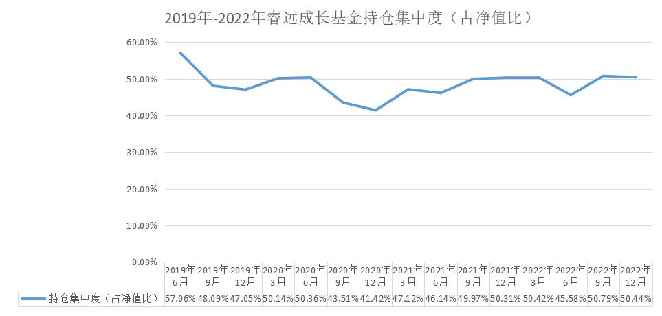 (2019年-2022年睿远成长基金持仓集中度变化情况,数据来源:天天基金网)