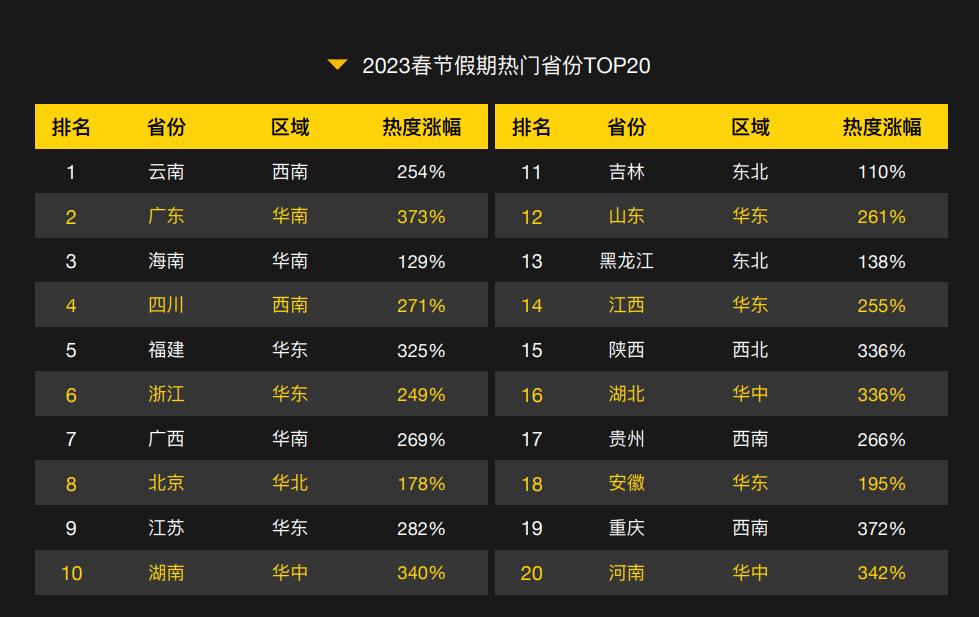 各家旅游数据都有一个共同特征:往南走、往西走。