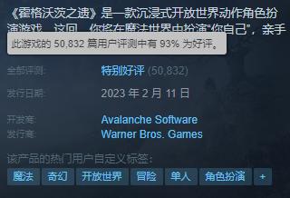它在各路游戏媒体的评分也不低,基本都在 80 以上,而在 Steam 商店,《霍格沃兹之遗》的总体评价也是 “ 好评如潮 ” ,好评率高达 93% ,算得上优秀作品。