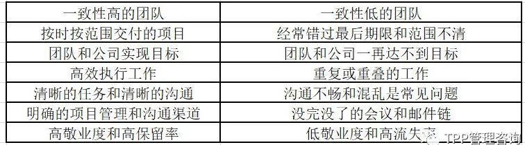 以下是两种团队具有的一些明显的特征,可以帮助你找出你的团队在一致性方面的表现情况。