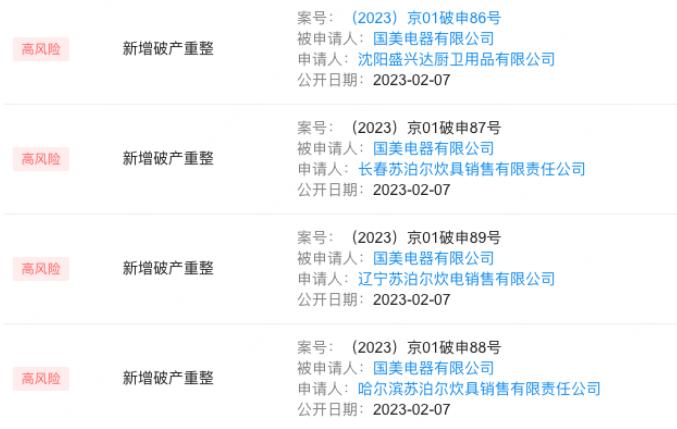 老朋友苏泊尔直接替国美申请了破产重整,不过后来被法院驳回了。/企查查