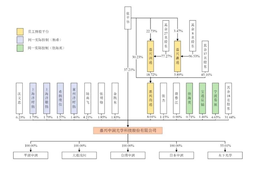2015年5月,木下光学增发普通股338股,沈志妹代张平华认购了该增发股份。2016年,沈志妹又将其持有的木下光学338股普通股,以3200万日元的价格转让给其朋友,随后,朋友将该部分股份以相同价格转让给中润。