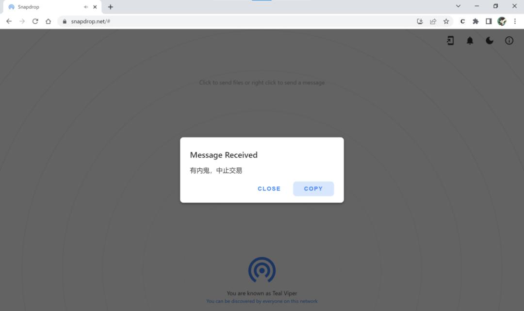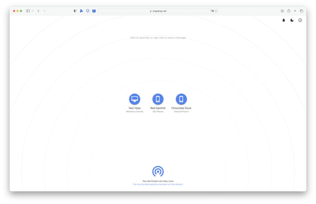 如 SnapDrop 的界面所见,它与访达中的 AirDrop 页面不能说一模一样,只能说完全一致:
