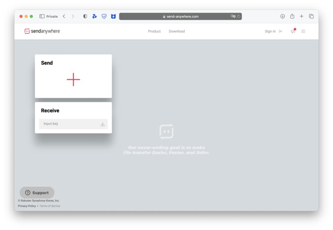 诚然,前面提到的 SnapDrop 可以很好的解决这个问题,但是它所必须的 Signaling 服务器的稳定性却参差不齐,局域网内「优势在我」的 LocalSend 又需要先下载软件才能使用。这种时候,支持 P2P 链接分享文件的老牌文件传输工具 SendAnywhere 就可以派上用场了。