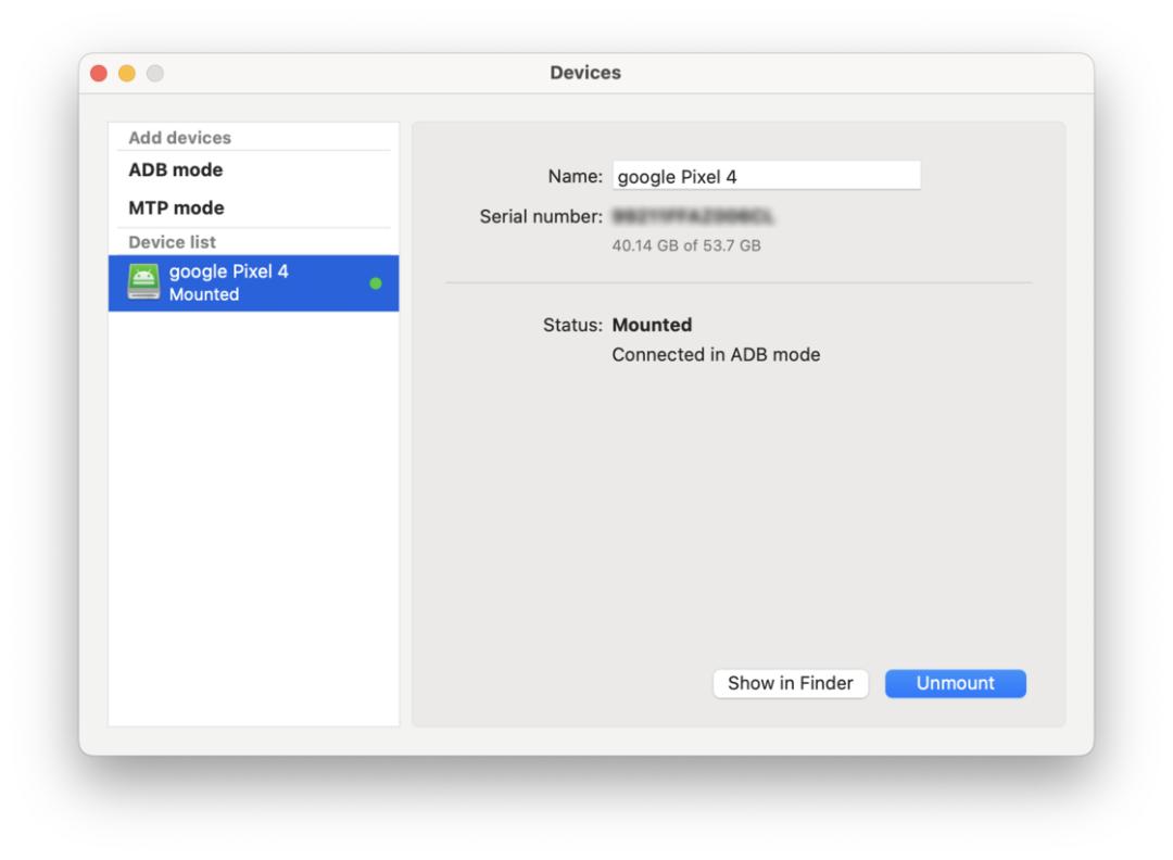 并且 MacDroid 可以同时挂载多台设备,你可以直接将 Mac 作为中继直接在两台 Android 设备之间通过数据线进行文件传输。
