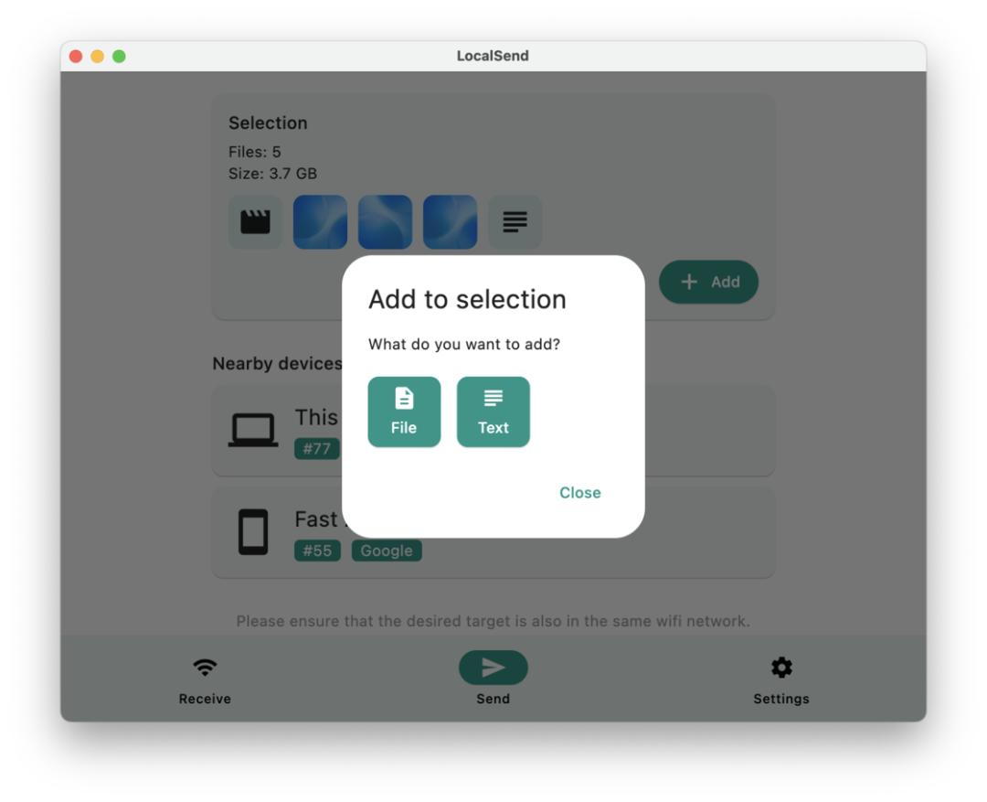 macOS 版的程序界面,可以看出 LocalSend 的交互主要还是基于 Android 的设计规范开发的