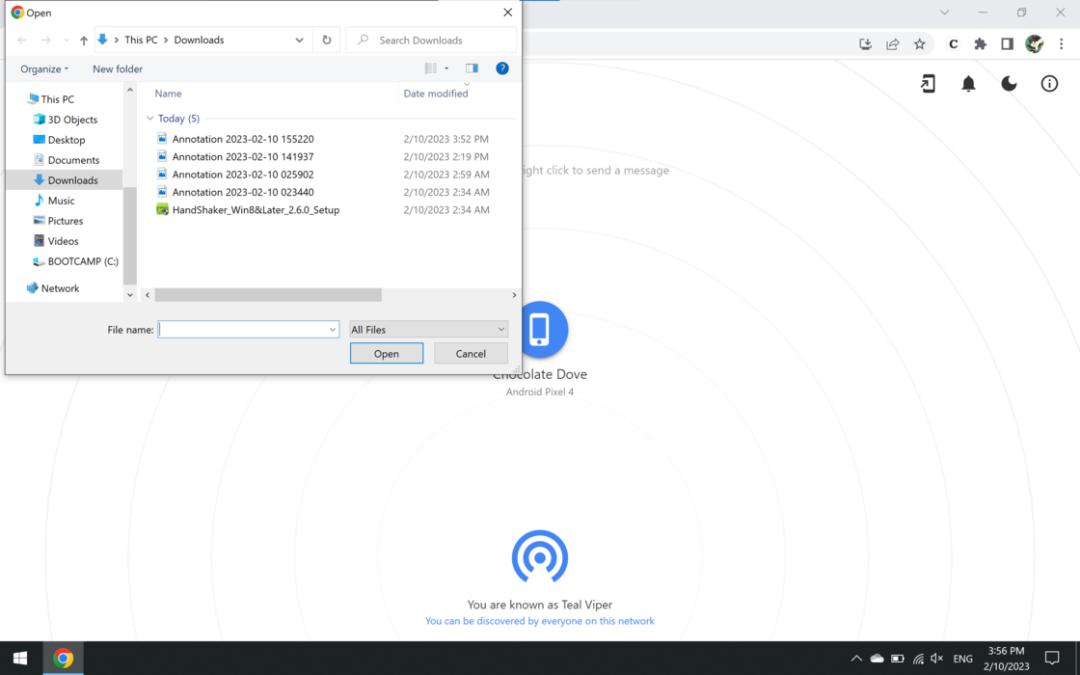 SnapDrop 会自动为局域网内登录了 snapdrop.net 网页的设备分配一个由颜色和动物组成的代号,点选对应的设备之后就可以选择你想要发送的文件了,过程体验也与 AirDrop 别无二致。