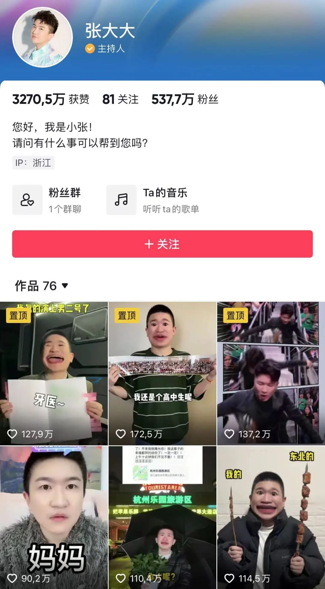 这些特质在当时的内娱人人喊打,时代几经变迁之后,在短视频平台可未必:一众在抖音直播发视频营业的明星里,张大大的个人特质相当突出,走红的缘由也恰好能和抖音适配。