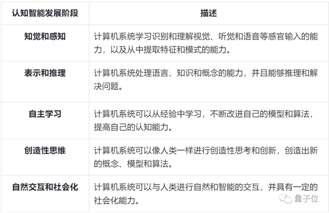 ChatGPT认为,认知智能的发展可以分为五个阶段,即知觉和感知阶段、表示和推理阶段、自主学习阶段、创造性思维阶段、自然交互和社会化阶段。