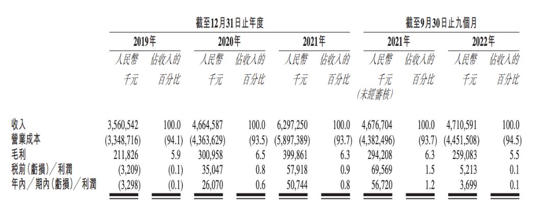 财务方面,据招股书显示,2019年、2020年、2021年及2022年前九个月,路歌的收入分别约为35.61亿元、46.65亿元、62.97亿元及47.11亿元,三年多时间累计实现收入192.34亿元,整体表现可圈可点。
