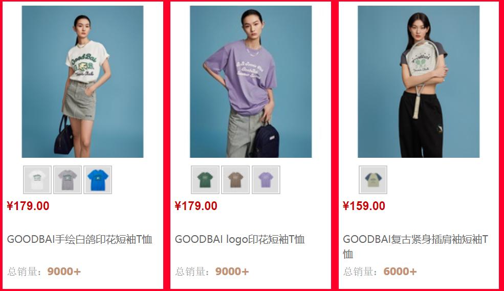 白敬亭的潮牌GOODBAI天猫销量TOP3