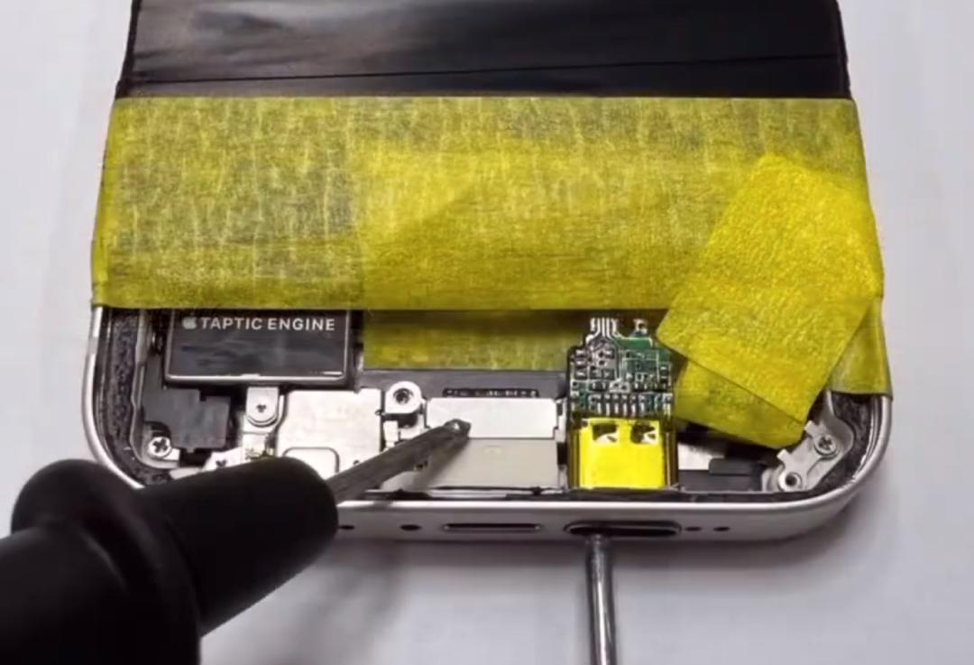 为了完成这样的壮举。他首先将 iPhone 12 mini 右侧喇叭进行了简化处理,留出的空位用于使用 USB-C 。