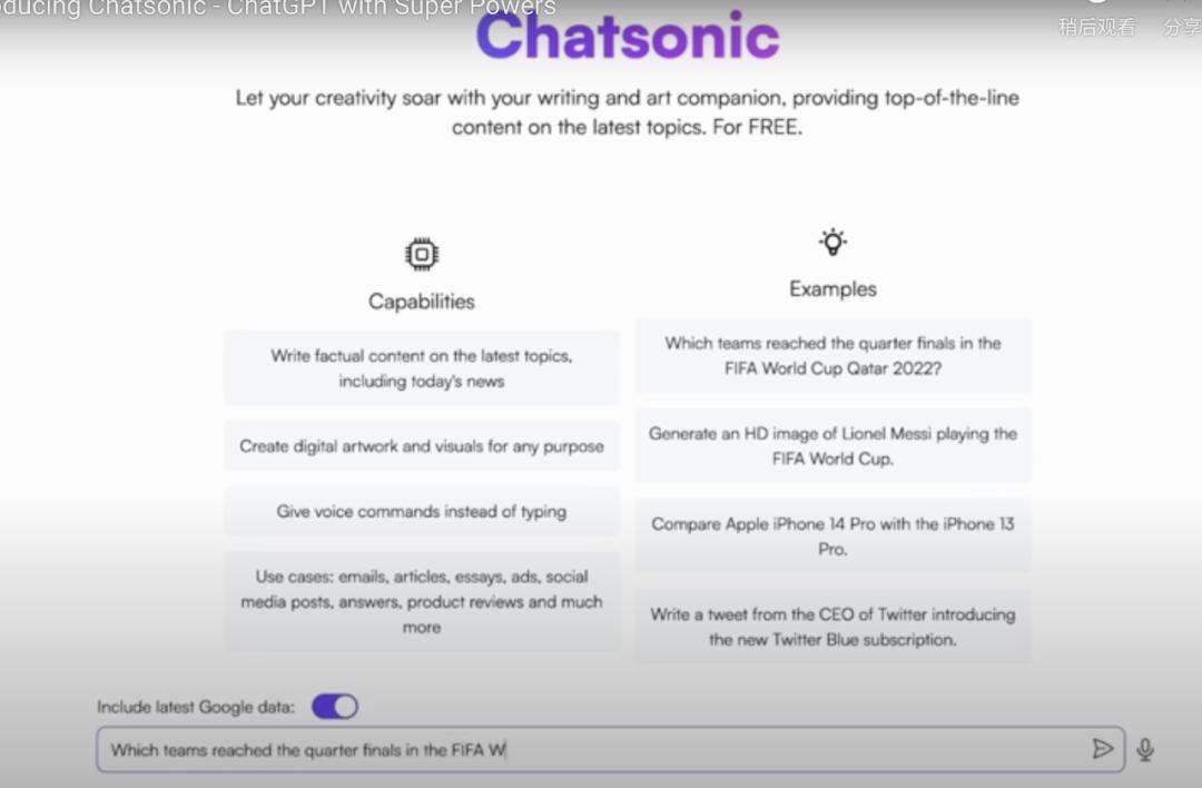 例如,它可以告诉我有关 FIFA 2022 年世界杯冠军的信息,但不能告诉我最近泄露的下一款三星旗舰手机。总的来说,结果还是比 ChatGPT 有限的数据好很多。