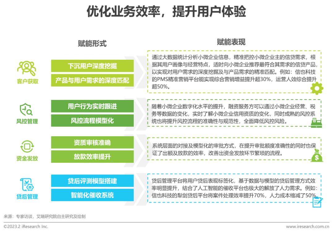 2.增效:大数据、人工智能等技术在金融领域的广泛应用,精准赋能小微融资全流程,优化业务效率,提升用户体验;