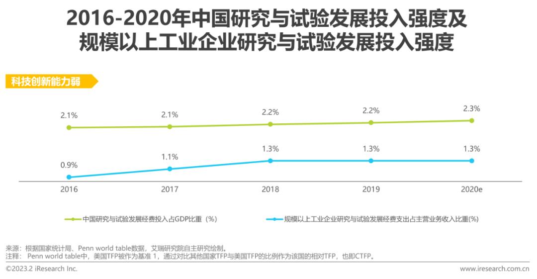 传统产业的症结:传统产业的参与主体大部分规模已成,传统产业生产经营效率受运作模式及科技创新能力限制。一、传统产业沿用至今的信息传导路径、资源调度模式存在运转低效的问题。二、国内本身研发投入强度不高,仅2.2%。而传统产业在研发方面投入强度更低,研发经费占营收比重普遍低于国内整体水平,传统产业科技创新能力仍然薄弱。