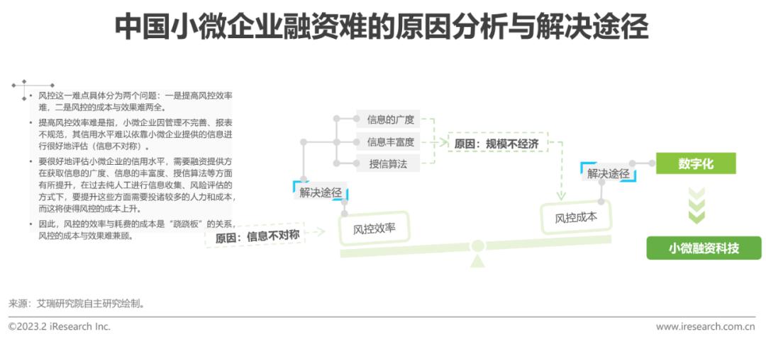 问题原因:小微企业普遍存在缺乏抵押物、经营管理不完善、报表不规范、缺乏有效评估或证明其信用水平的方式等问题,金融机构为其提供融资服务的风控的成本与效果难兼顾。