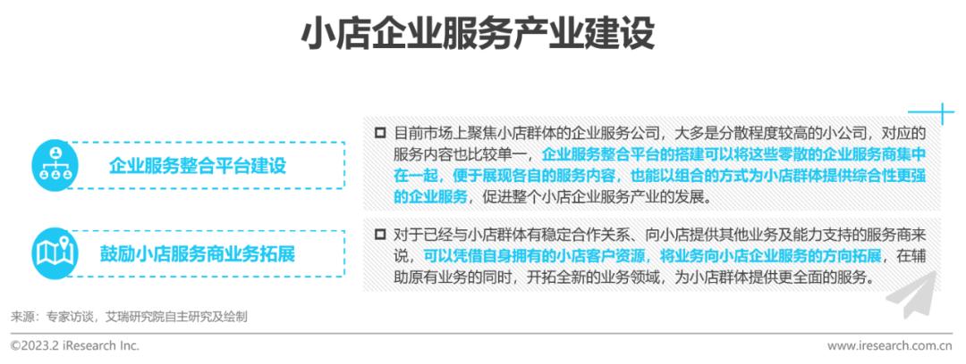 从系统建设、配套服务与意识引导三方面促进“小店”企业服务体系完善;整合平台的搭建是产业建设的重要部分