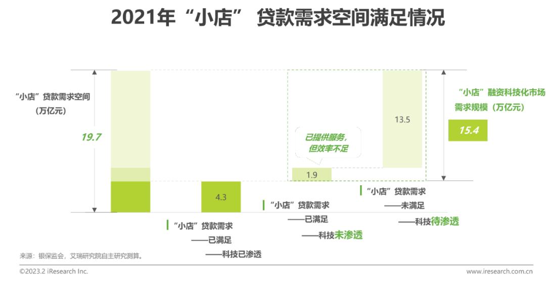 2021年“小店”融资科技化市场需求规模15.4万亿,包括未满足需求空间及已满足但未被科技渗透部分