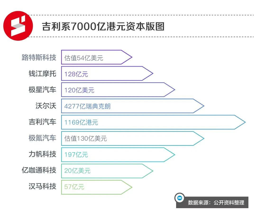 算起来,目前吉利已手握9家已上市或拟上市企业,包括吉利汽车、沃尔沃、极星、亿咖通、钱江摩托、汉马科技、力帆科技、极氪以及路特斯科技。