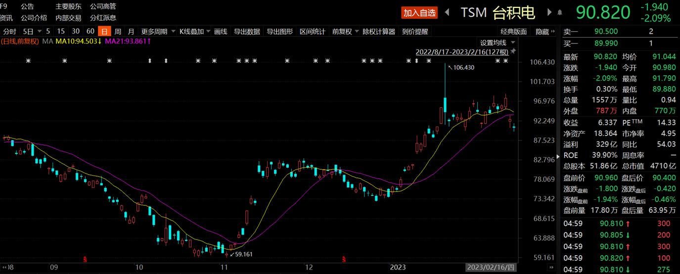 1月3日-2月14日,台积电区间涨幅超过31%;而随着伯克希尔抛售的消息传出,台积电股价已连续两天下跌。