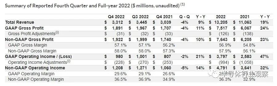 2022年又是AMD增长强劲的一年,尽管下半年PC环境疲软,AMD仍实现了高速增长和创纪录的营业额。2022年AMD全年营业额为236亿美元,同比增长44%,毛利率为45%,同比下降3%,经营收入为13亿美元,净收入为13亿美元。