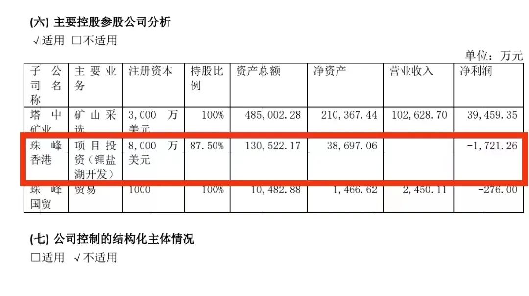 然而,令人疑惑的是在公司的财报上,却一直没有体现。直到2021年上半年,它的财报中,关于珠峰香港(锂盐湖开发)这一栏的营业收入,都是零。(其2022年半年报,依旧如此)