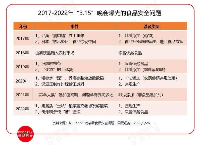 从“3.15”晚会看食品安全问题,国元证券,2022/3/26