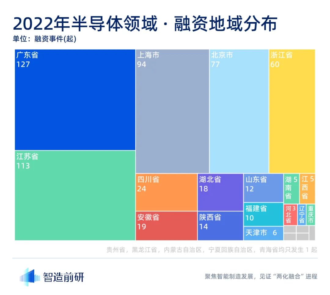 从融资地域上看,排名前五的地区分别是广东省、江苏省、上海市、北京市和浙江省,其中广东省作为老牌电子制造的排头兵,当仁不让的扛起了产业转型升级的大旗,成为融资事件最多的地区。江苏后来居上,力压北京上海两大超级中心守住了亚军的位置,这也与当地政府的大力扶持和政策优惠有脱不开的关系。随后是上海和北京两个经济政治中心,虽然这里土地资源有限不利于制造业发展,但其虹吸效应依然持续不断地吸引各路人才前来发展,所以在此扎根的大多是以设计为主的半导体企业和下游应用型平台,当然也不乏像“燕东微”这类从科研院所脱胎而出的老牌骨干力量,在沉默中为国铸剑。