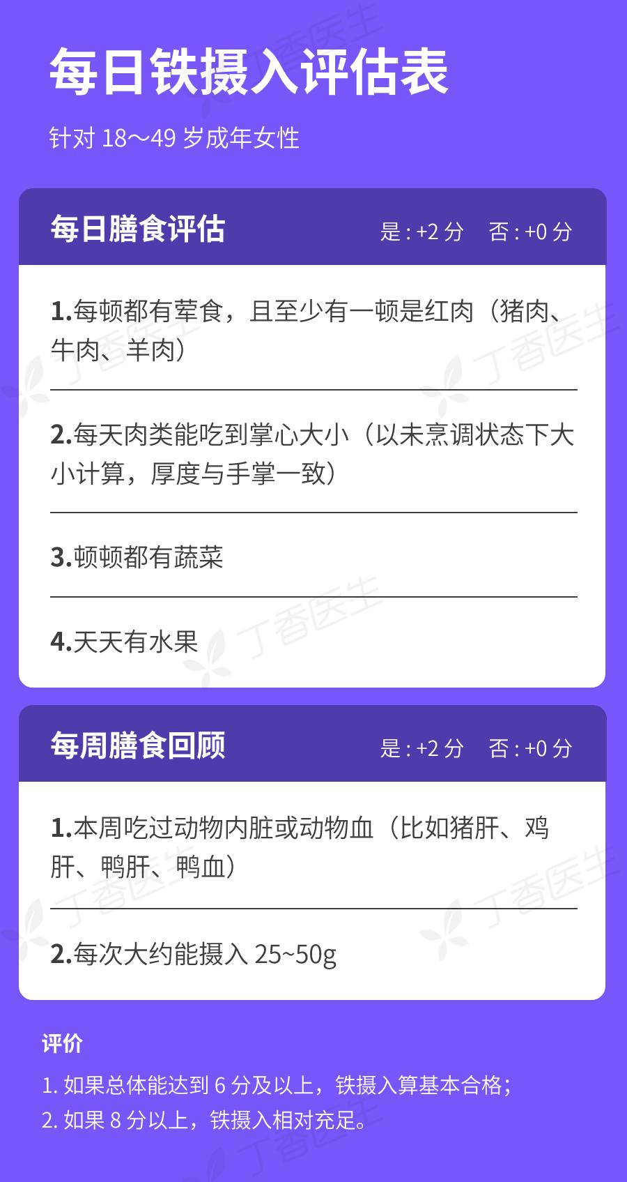 建议各位回顾自己的膳食,对饮食习惯进行一个简单的评估,这里有 6 个问题,能帮你简单判断铁是否吃够了。