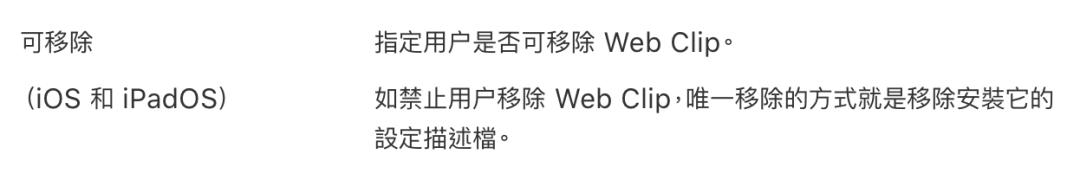 描述文件也可以在用户设备的桌面设置WebClip(网站快捷方式),甚至可以选择让WebClip像Android平台的流氓软件一样无法被删除。事实上不少网络黑产也确实使用WebClip作为流氓推广方式。