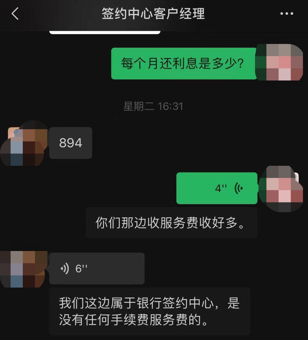 记者也注意到,在刘岩与中介公司客户经理的聊天截图中,对方也表示其属于银行签约中心,“是没有任何手续费服务费的” 。