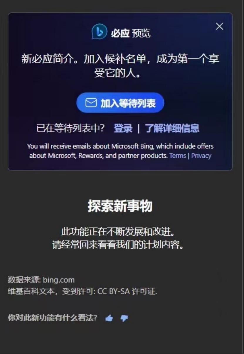 一位已经拿到New Bing内测资格的用户对剁主表示,就在最近几天,他确实感觉到New Bing开始“摆烂”了。 “最开始使用New Bing时,效果确实十分惊艳,比传统的搜索引 擎要强大十倍不止。 但近几天,生成的质量有了明显的下降。 ”