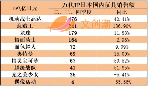 第一位《机动战士高达》销售额476亿日元,同比增长40.41%;