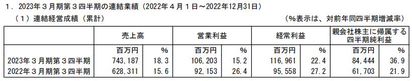Happinet最新发布的2022年2、3、4季度累计(2022.4.1-2022.12.31)财报数据显示,销售额2423.84亿日元,同比增长9.9%;归属股东当期纯利润36.87,同比增长4.4%。全面增收增益。