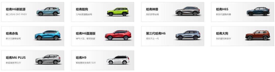 图9:哈弗品牌在售车型, 资料来源:长城汽车