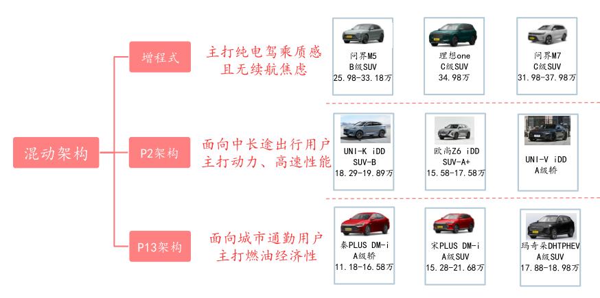 图3:不同混动架构对应车型, 资料来源:中信建投