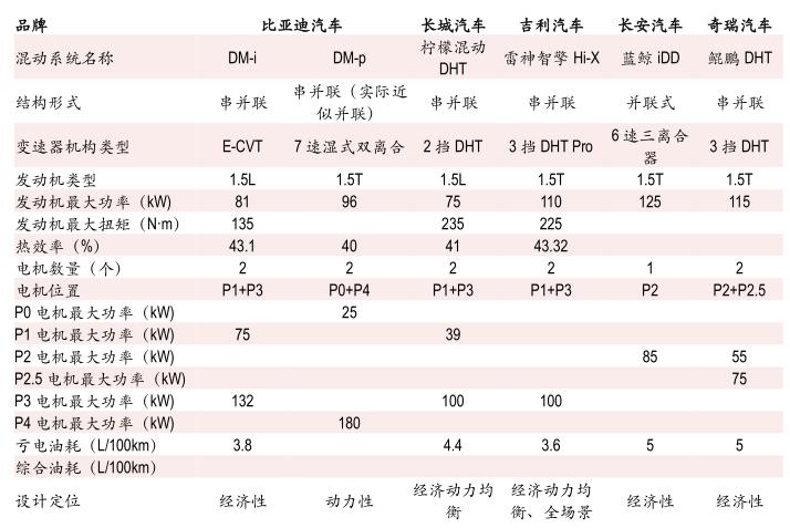 图6:主要车企混动技术参数对比, 资料来源:汽车之家,中银证券