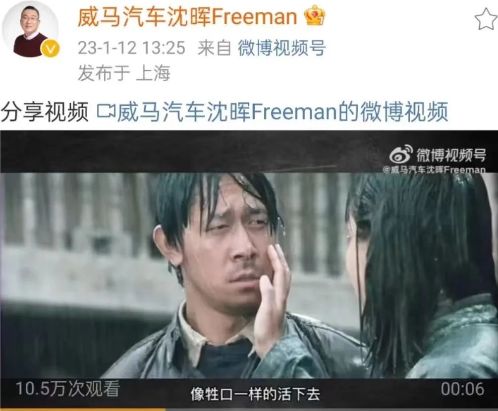 同一天,威马创始人、董事长沈晖在个人微博借用电影《芙蓉镇》的一句台词:“活下去,像牲口一样活下去。”但实际上,威马的处境已经极度困难。