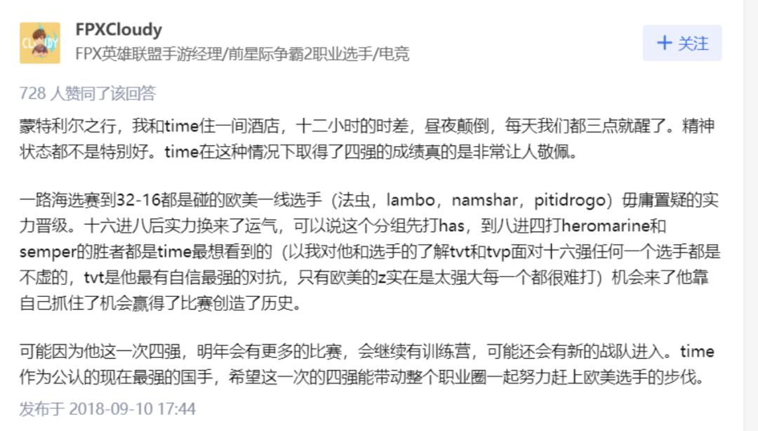2019年,《星际争霸2》宣布停更时,李培楠曾说过:“因为星际争霸真的陪了我太久了,我喜欢的是这个游戏本身,就算到最后只有10个人还在玩,我也会成为其中的一员的。”