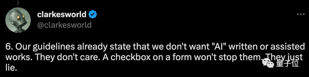 我们明确禁止了AI参与到投稿的创作中,但是那些人根本不在意,我们没法阻止,他们只会撒谎。