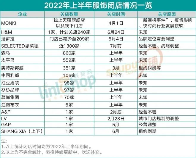 闭店的服装品牌,大多是快时尚品牌/图源:联商网